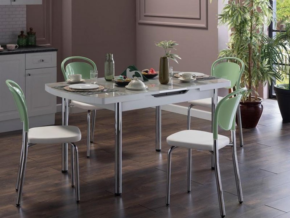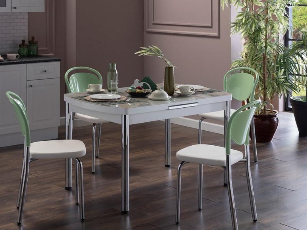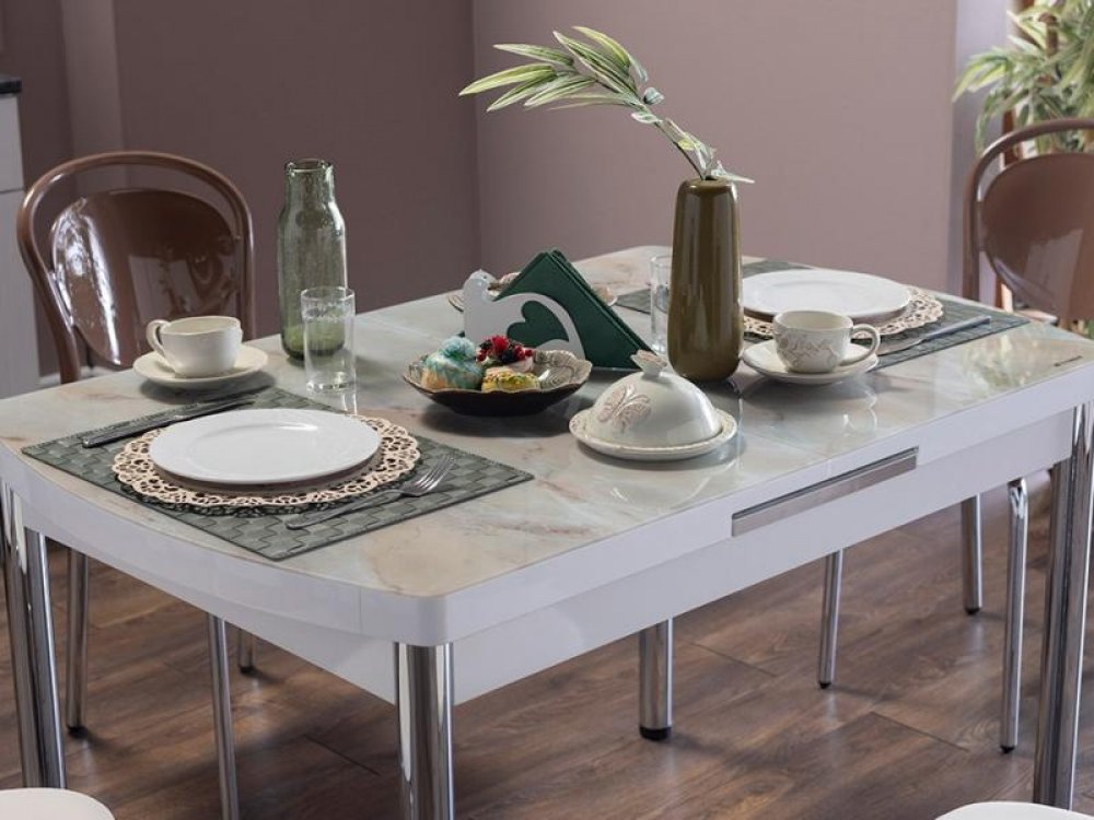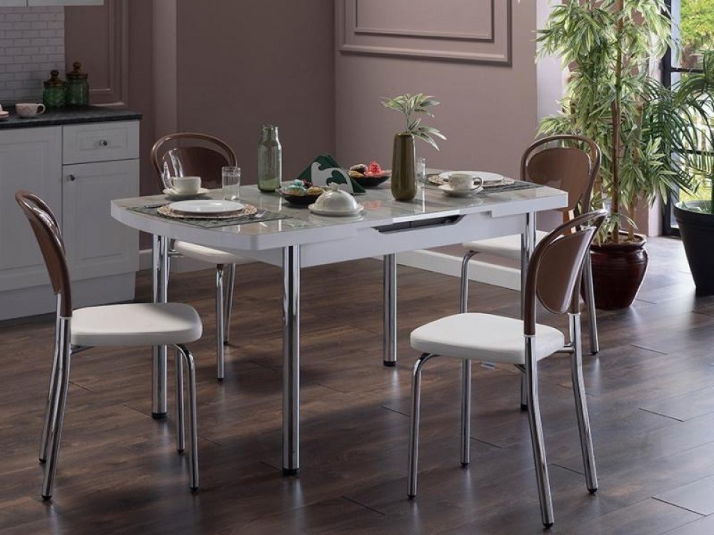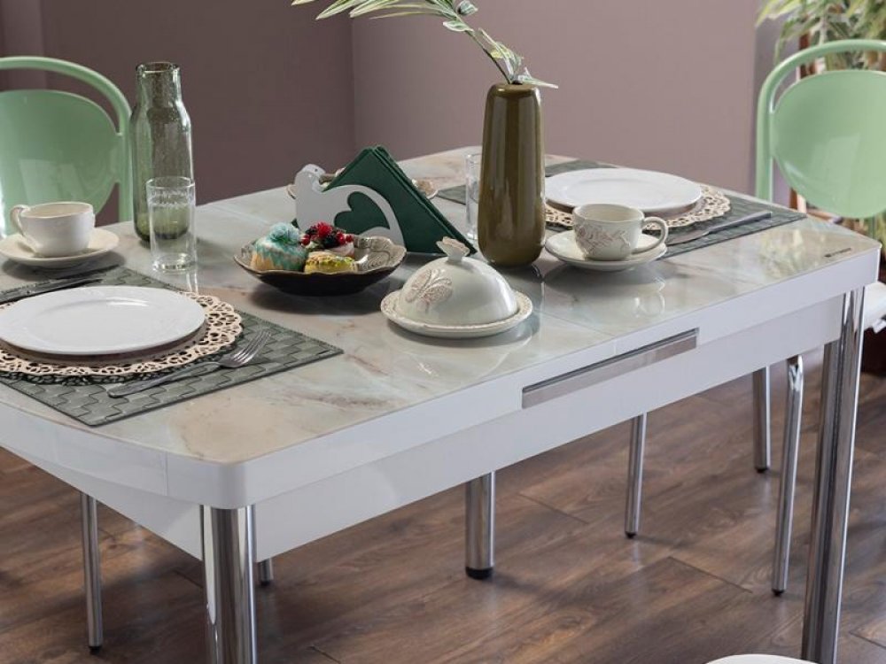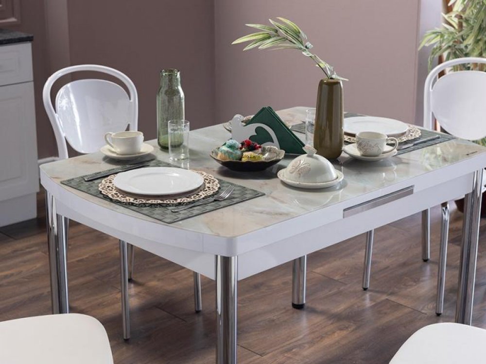 Marble Mutfak Masa Seti Beyaz
